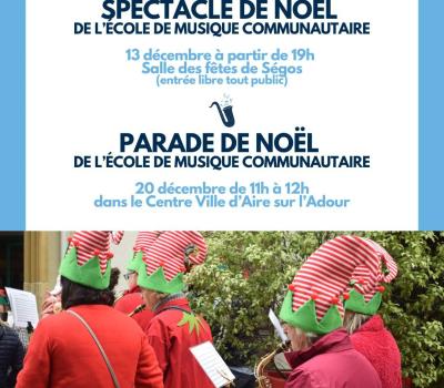 40800 AIRE-SUR-L'ADOUR Samedi 20 décembre à 10h30 : Parade musicale des lutins portée par l'École de Musique Communautaire. Départ Office de Tourisme