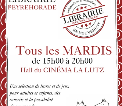 40300 PEYREHORADEVenez découvrir, tous les mardis, une sélection de livres et de jeux pour adultes et enfants avec des conseils et la possibilité de commander.