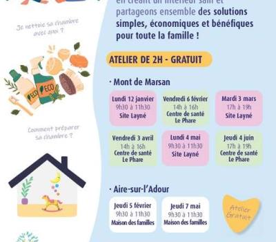 Ca parle de quoi? Un atelier pratique pour apprendre à réduire les polluants dans votre maison et offrir à votre enfant un cadre de vie sain et sécurisé. Protégeons la santé des tout-petits en créant un environnement intérieur sain Un atelier pour :- Repérer les polluants dans la maison (meubles, produits ménagers, jouets, etc.)- Comprendre leurs impacts sur la santé, notamment celle des bébés et des femmes enceintes- Trouver des alternatives concrètes pour assainir son intérieur 𝗝𝗲𝘂𝗱𝗶 𝟱 𝗳𝗲́𝘃𝗿𝗶𝗲𝗿 𝗱𝗲 𝟵𝗵𝟯𝟬 𝗮̀ 𝟭𝟭𝗵𝟯𝟬 Atelier 𝒈𝒓𝒂𝒕𝒖𝒊𝒕 sur inscription 05 58 05 18 18 ou par maternite@ch-mdm.fr Gratuit