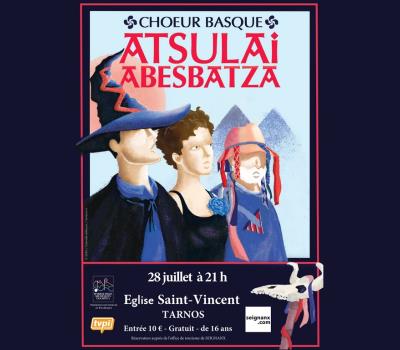 Atsulai Abesbatza, association culturelle du Pays Basque (Aïnhoa), fait une halte cet été dans la commune de Tarnos. Ce chœur vocal vous propose le temps d'une soirée, la découverte des chants basques (répertoire diversifié de chants traditionnels, sacrés et profanes ainsi que des chants du monde).