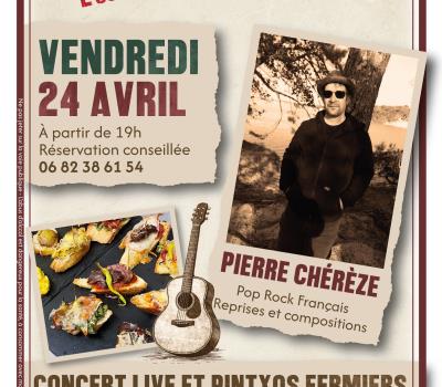 Au programme : ?? Pintxos fermiers à déguster toute la soirée ?? Concert live de Pierre Chérèze Pop Rock français, entre compositions et reprises Une soirée conviviale, de la bonne musique, des bons produits… tout ce qu’il faut pour passer un bon moment à la ferme ?? ?? Réservation conseillée On vous attend nombreux ! Tarifs : Plein tarif : à partir de 24,00 € |