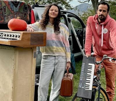 Réservation conseillée Il est des rencontres significatives dans une vie d’artiste. Celle de la vocaliste clown Leïla Martial et du pianiste voyageur Élie Dufour est de celles qui savent ouvrir un nouveau champ des possibles artistiques. C’est un joyeux Bazar, un ascenseur émotionnel et une bouffée délirante. Leïla Martial et Élie Dufour nous ouvrent les portes de leur laboratoire créatif et nous proposent de découvrir leur machine à voyager dans le temps. Un duo oui, mais polyphonique. Du piano voix « traditionnel » aux transes techno-dancefloor, des chansons sur fond d’organetto (orgue portatif médiéval) aux grandes envolées lyriques, de l’orgue d’église aux harmonies tziganes, de Bach à nos jours… Spectacle prévu en plein air, dans le cloître. Repli possible dans la grange aux dîmes en cas de météo défavorable. Tout public Tarifs : Plein tarif : à partir de 5,00 € Tarif réduit : à partir de 3,00 € Gratuit