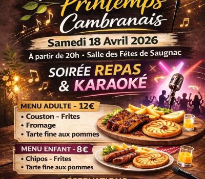 Venez fêter l'arrivée du printemps avec soirée repas /karaoké à la salle des fêtes de Saugnac-et-Cambran. Vous aimez chanter ? Vous aimez vous ambiancez ? Vous aimez bien manger ? Cette soirée est faite pour vous !