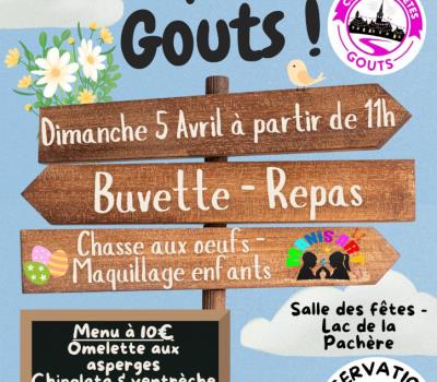 Pour ne pas attendre les fêtes des Gouts, le comités des fêtes vous invite à venir partager le casse-croûte du week-end de Pâques.