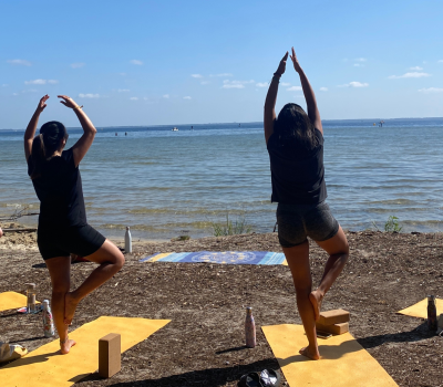 Margaux propose des séances de hatha yoga en plein air, au lac de Biscarrosse et face à l'océan : Navarosse et Plage Sud