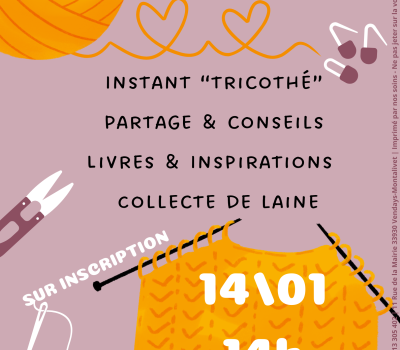 33930 VENDAYS-MONTALIVETLaissez votre créativité s'exprimer en toute convivialité : Tricot, collecte de laine, livres d'inspirations. Sur inscription à la Médiathèque de Vendays.