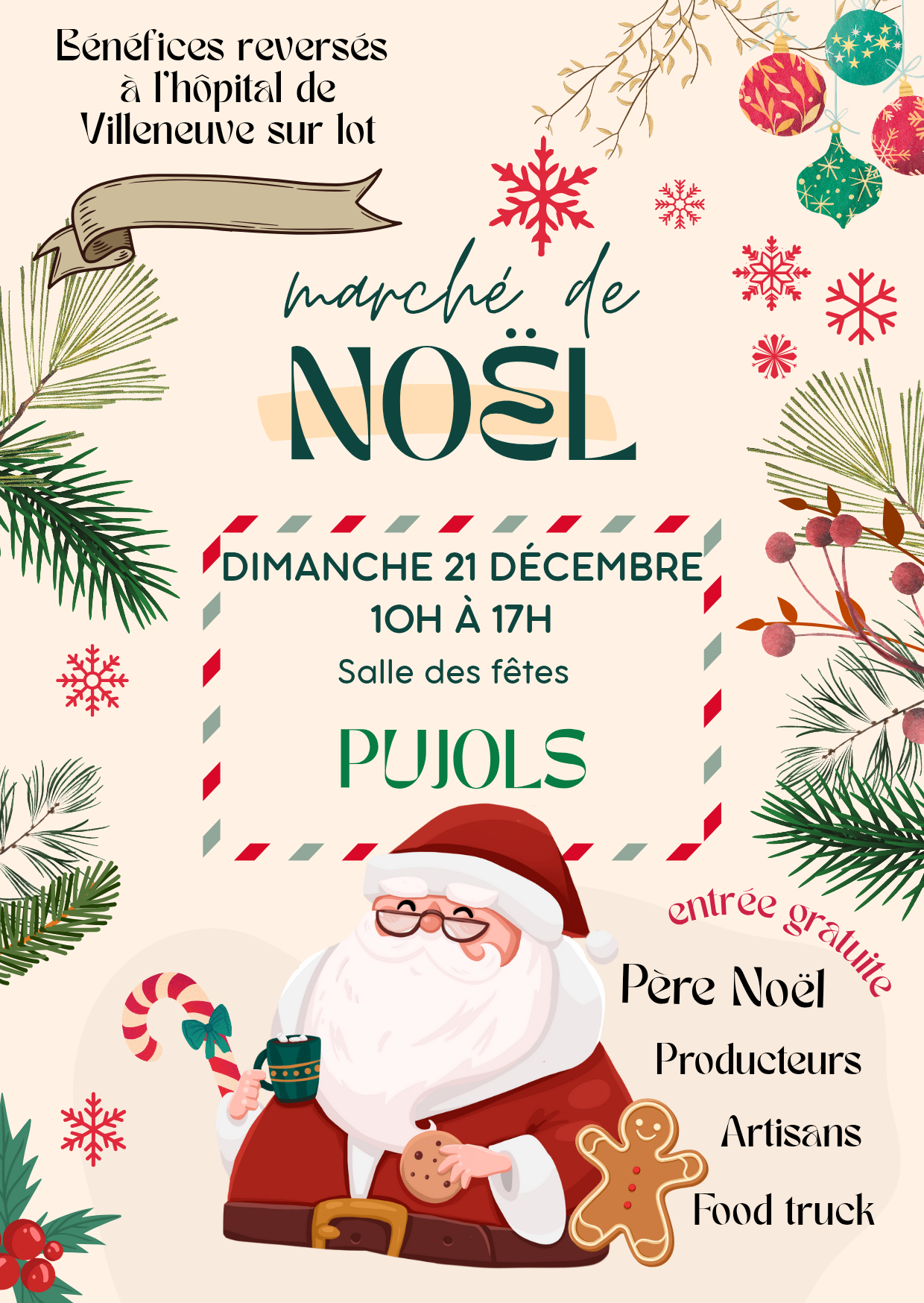 | Marché de Noël Le dimanche 21 décembre 2025 47300 PUJOLS Tél : +33 5 53 76 16 13