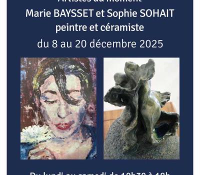 Marie Baysset mêle peinture et poésie dans des portraits sensibles de femmes, d’enfants et d’animaux. Sophie Sohait, céramiste depuis 30 ans, crée des pièces uniques inspirées des quatre éléments. Les deux artistes exposent et vous accueillent du lundi au samedi, de 10h30 à 18h.