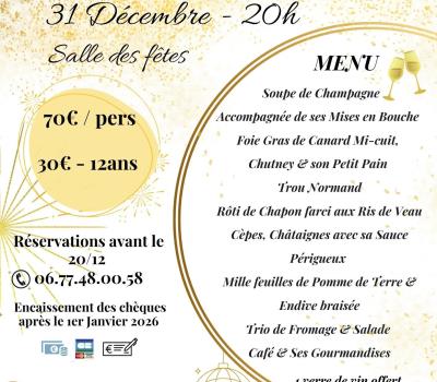 Réveillon de la Saint-Sylvestre à la salle des fêtes de Lisle dès 20h.