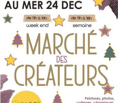 Comme chaque année à l'approche des fêtes, l'Aparté organise son marché des créateurs. Venez découvrir le talent des artistes et artisans locaux qui vous proposeront peintures, céramiques, bijoux, décorations, gourmandises et diverses autres merveilles qui feront des cadeaux authentiques et uniques à offrir ! Les artistes et artisans seront présents le week-end. Gratuit (entrée)