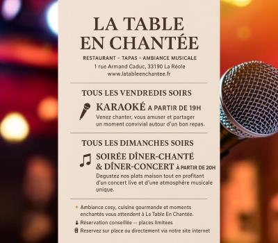 Venez chanter, dîner et passer un moment agréable dans une ambiance chaleureuse ! |