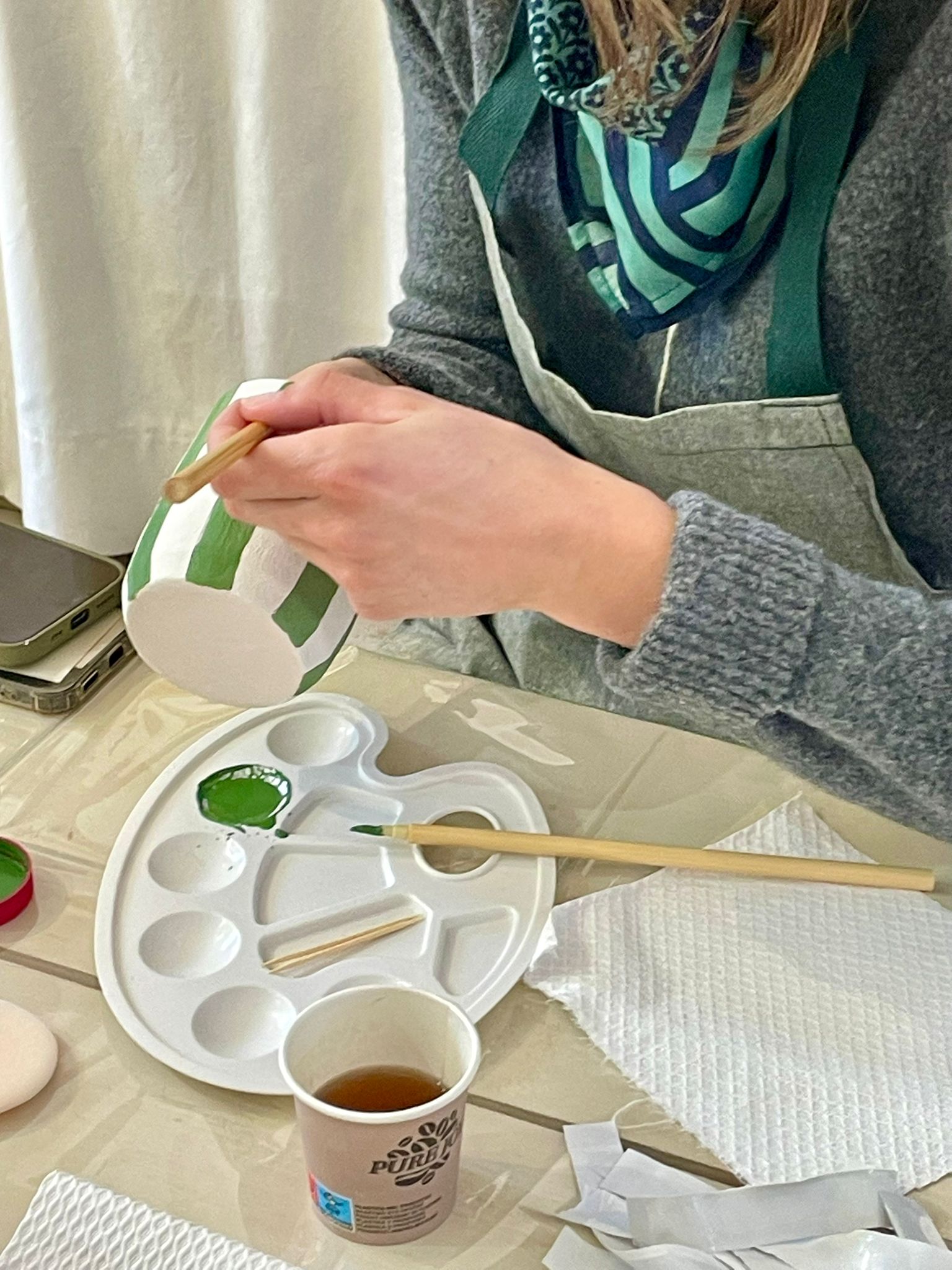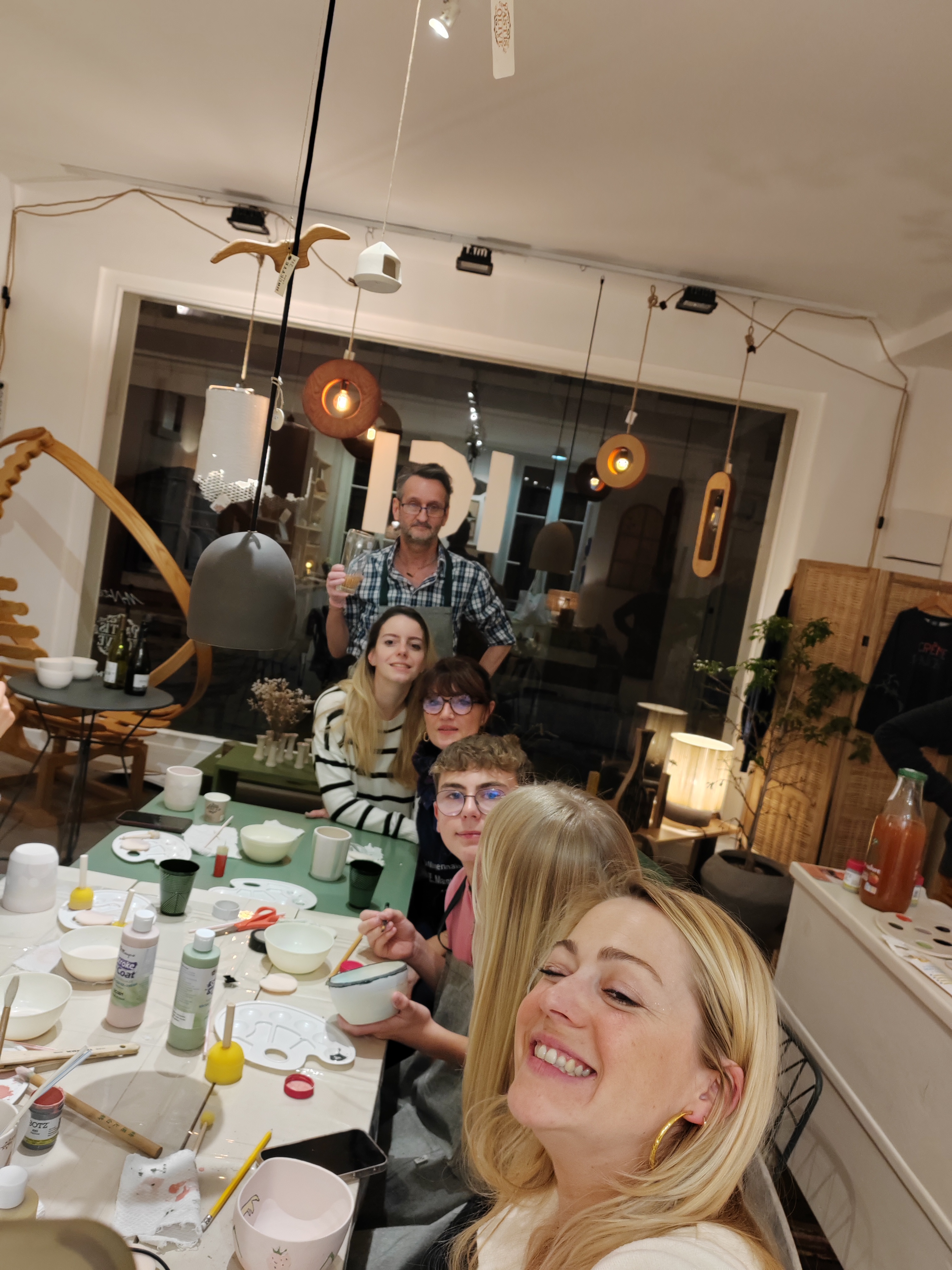 | Un moment créatif avec Nathalie où chacun décore une pièce en grès brut avec couleurs, pinceaux et imagination, avant qu’elle ne soit émaillée et cuite pour révéler son éclat unique. |