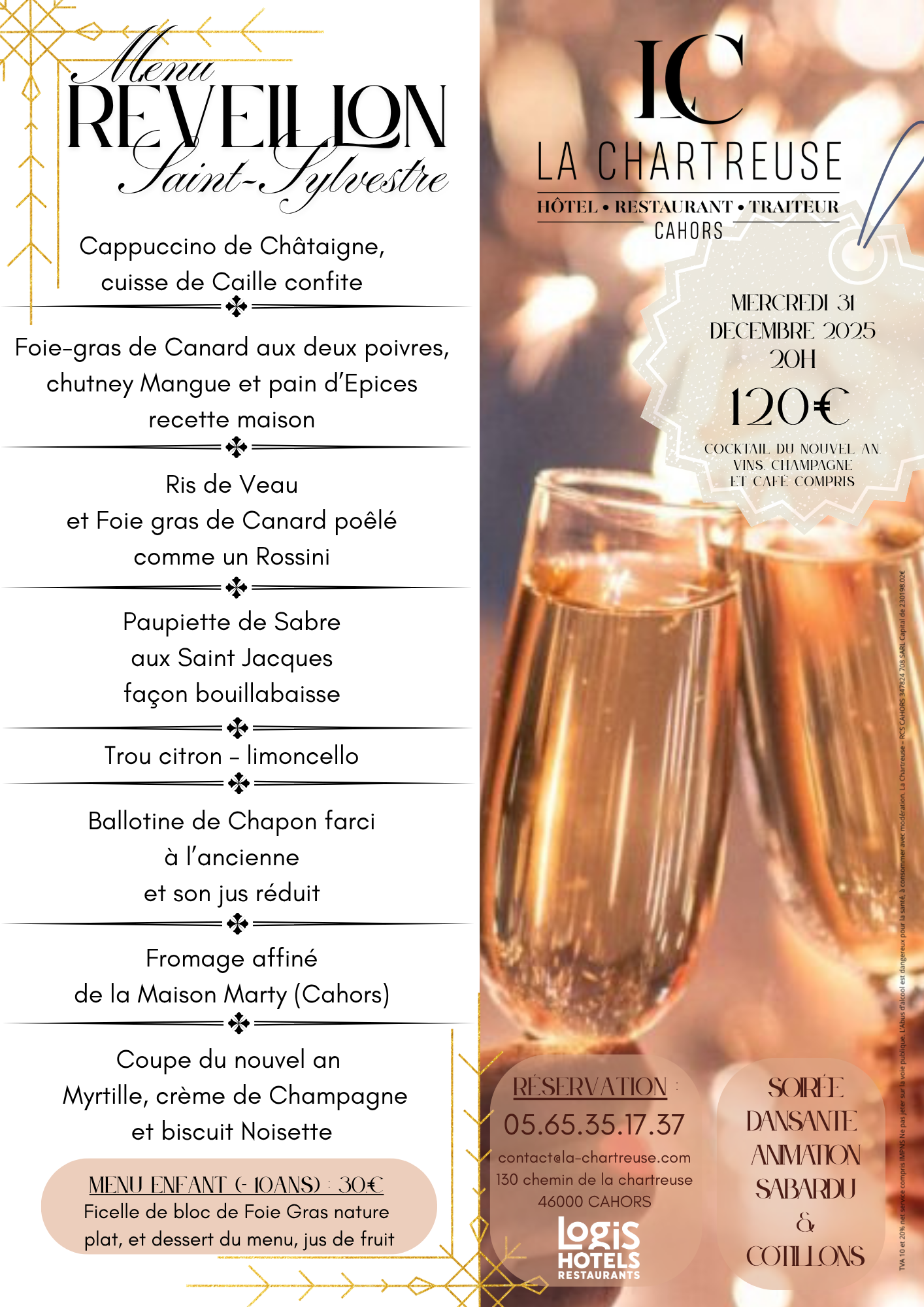 Menu de la Saint Sylvestre à La Chartreuse |
