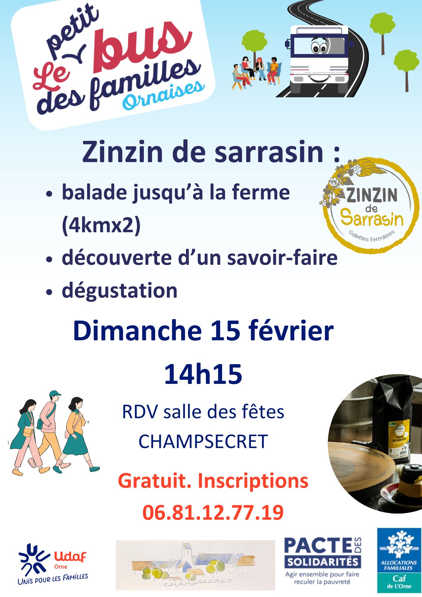 | Balade jusqu'à "Zinzin de sarrasin" (3,6km aller), découverte et goûter | |