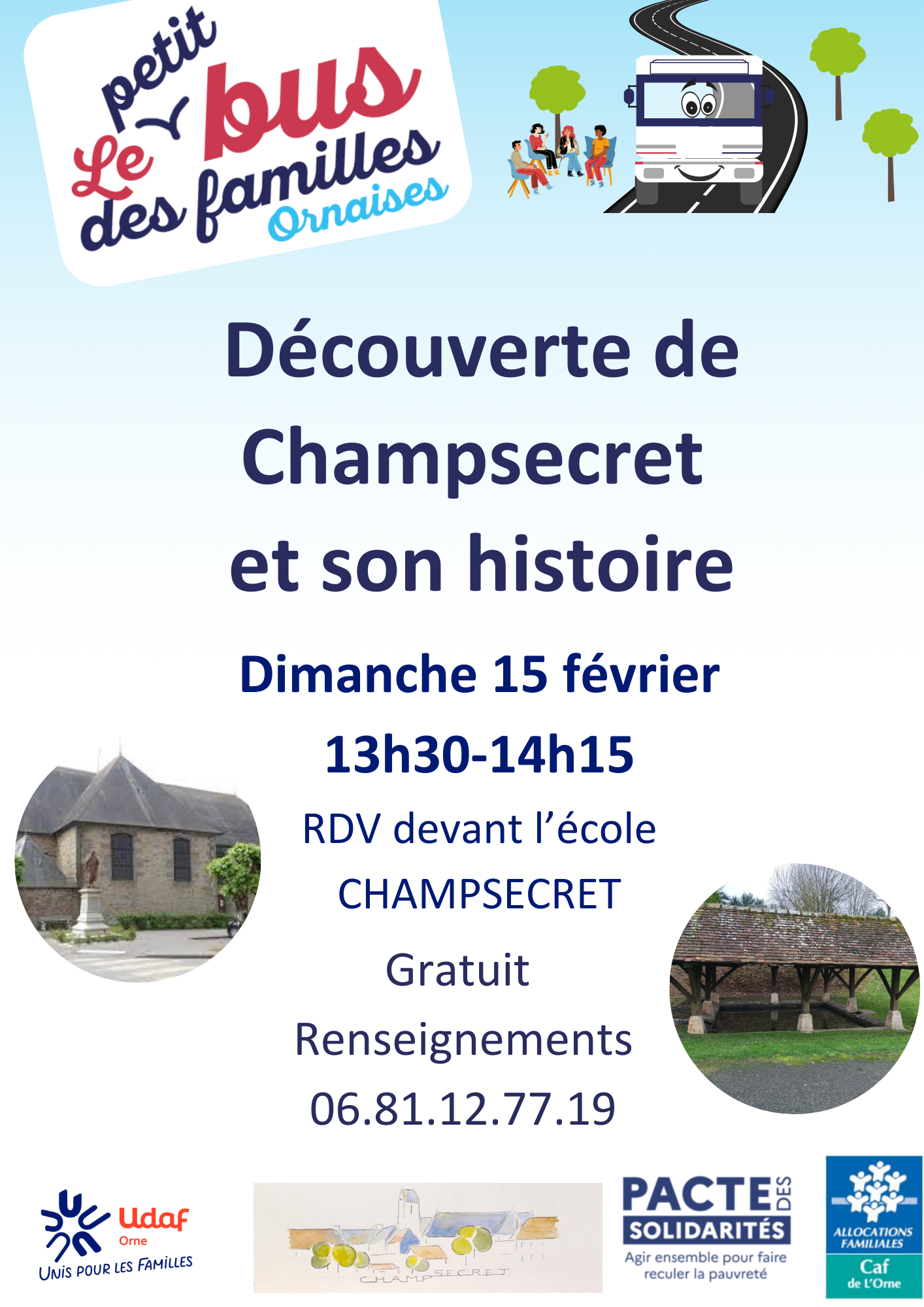Le 14/02/2026 de 10:00 à 14:00 Le Bus des familles de l'Udaf de l'Orne est à Champsecret du 2 au 21 février et propose des animations gratuites coconstruites avec les habitants,... |