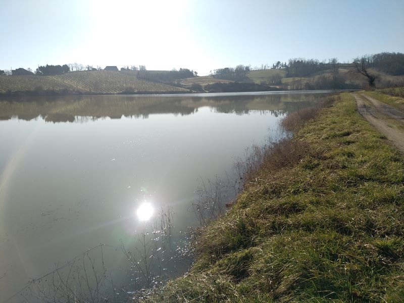 Accès - Stationnement : Après le village d'Aydie prendre la D48, tourner sur la gauche chemin du lac avant la patte d'oie. La circulation est autorisée rive gauche.