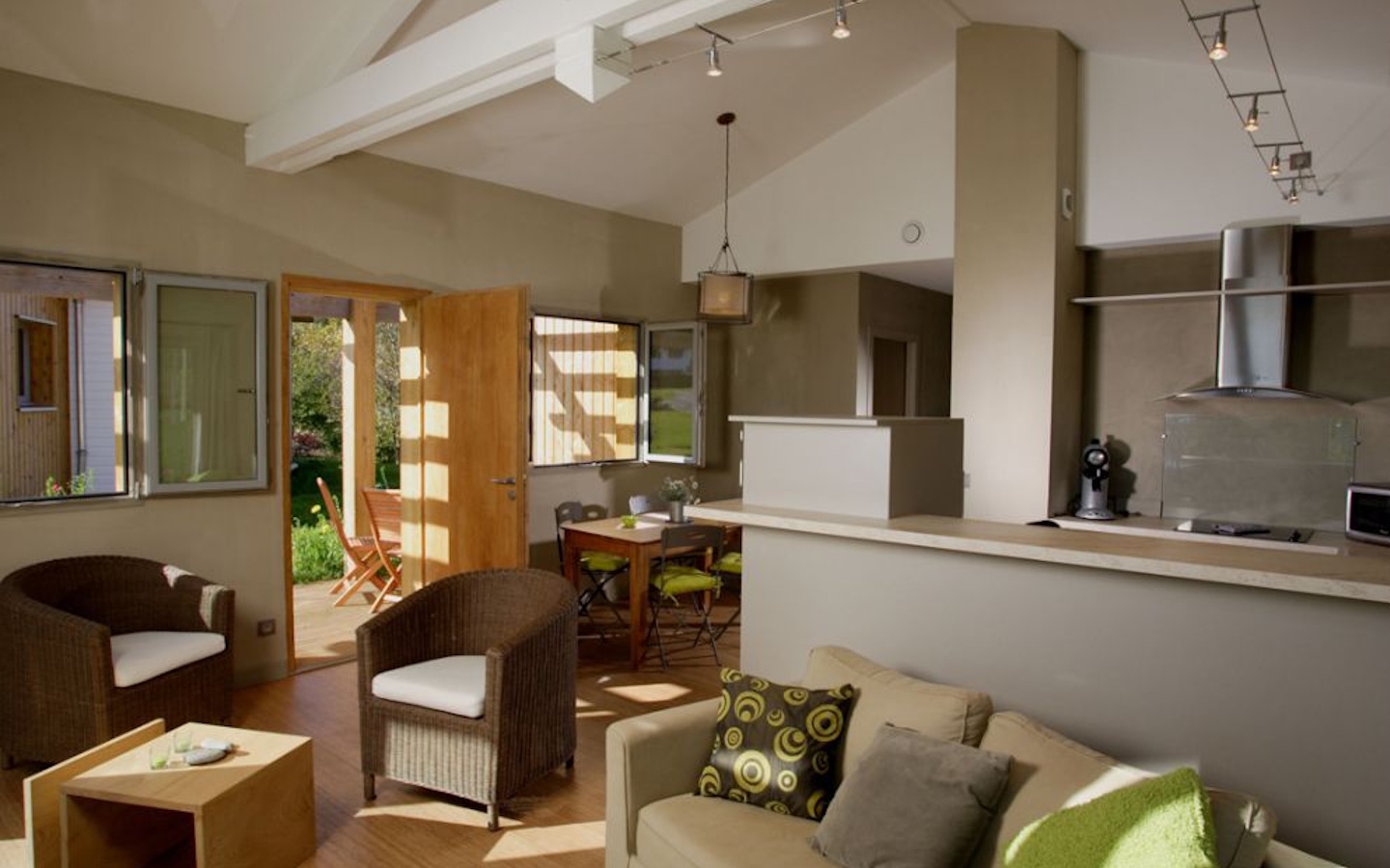 Eco-gîte**** aménagé pour procurer bien être et confort dans le pur respect de l'environnement et répondant à la norme HQE (Haute Qualité Environnementale). Conception en ossature bois, isolation en ouate de cellulose, peintures à la chaux, piscine chauffée de mi-juin à mi-septembre par pompe à chaleur, jeux pour enfants...