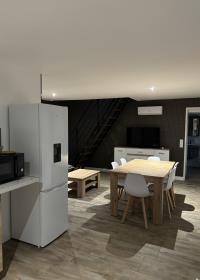 Jolie petite maison entièrement rénovée comprenant un système de climatisation et chauffage réversible. Idéal pour 6 voyageurs. Une place de parking est mise à disposition avec prise renforcée pour véhicules rechargeables. La maison comprend au rez-de-chaussée une cuisine spacieuse ouverte sur salon-séjour. Une salle de bain ainsi qu’une première chambre équipée d’un lit double. Le canapé est également convertible.