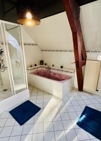 Elle dispose d’une douche moderne, d’une baignoire pour se détendre, d’une double vasque très pratique pour les séjours à deux. Wifi gratuit (code remis à votre arrivée). Draps fournis et lits faits à votre arrivée.