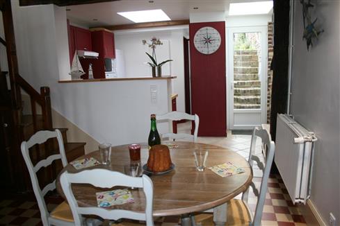 | A deux pas du centre ville de Saint Valéry, dans une rue calme, maison de pêcheur entièrement rénovée, et ayant conservé le charme de l'ancien, comprenant : entrée sur séjour, cuisine aménagée et équipée ouverte, 1 WC indépendant, 1 salle de douche. A l'étage : 2 chambres avec chacune 1 lit en 140. Terrasse suspendue avec salon de jardin, jardin, barbecue. Animaux admis : 3€/jour. Linge de toilette et draps sur demande. Option ménage. Equipement bébé. |