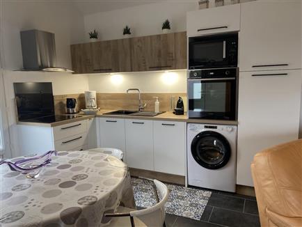 | Dans le hameau de Sallenelle (commune de Pendé à 2 km), gîte de plain-pied (45 m²) (pas de chambre à l'étage) situé dans la cour des propriétaires. Coin cuisine équipée(réfrigérateur, petit congélateur,cafetière filtre et à dosettes Krups, lave-linge, lave vaisselle) ouvert sur le séjour. 1 chambre au rez-de-chaussée (1 lit 140x190) communicant avec la salle d'eau (cabine douche) et WC sanibroyeur. Chauffage électrique en supplément. Forfait ménage. Cour commune fermée avec parking. Terrasse privative et pelouse (50 m²). Garage possible pour vélos et motos. Baie de Somme, St-Valéry-sur-Somme à 3 km. Borne de recharge pour véhicule électrique à 6 km. Taxe de séjour en supplément. Forfait ménage : 50 € , à verser sous forme de caution à l'arrivée |