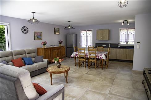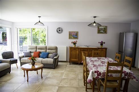 | Dans le village, gîte indépendant (113 m²) avec un jardin clos (600 m2). Parking privatif clos pour 3 véhicules. Au rez-de-chaussée : grande pièce de vie (40 m²) avec cuisine aménagée (réfrigérateur/congélateur, four traditionnel, four micro-ondes, cafetière électrique et à dosettes Magimix, grille-pain, appareil à raclette, croque-gaufre, plancha) ouverte sur le séjour. 1 chambre (1 lit 140x190). Salle d'eau avec douche au sol (sèche-cheveux). WC indépendant. Lave-linge dans le cellier. A l'étage : 1 chambre (1 lit 160x200), 1 chambre mansardée (2 lits 90x190), salle de bains avec WC. Terrasse avec transats, salon de jardin, barbecue avec grille-plancha. Taxe de séjour incluse. Animaux non admis. Restaurant Bistrot de Pays dans le village. A 6 km de St Valery sur Somme et de la baie de Somme. Boucherie/charcuterie dans le village et passage boulanger tous les matins vers 9h (sauf le dimanche). Local sécurisé pour vélos. Prise renforcée pour véhicule électrique dans le gîte et borne de recharge à Saint Valery sur somme ou Miannay. (environ 7 kms). |