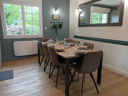 | Situé au cœur de l'une des plus belle baie du monde à quelques mètres du port et du centre de Saint Valery sur Somme, "Le Clos de la Cavée" vous accueille dans ce gîte très confortable au rez de chaussée d'une maison avec parking privé et grand terrain arboré. Il est équipé d'une cuisine entièrement aménagée, d'un séjour et d'un salon avec deux canapés dépliables en lit si besoin donnant sur une terrasse privative avec salon de jardin et barbecue en pierre. Une literie de qualité aménage vos 3 chambres dont 2 équipées d'une salle de bain avec douche, vasque et sèche-serviette électrique. Le linge de lit, le linge de salle de bain ainsi que les consommables( café, dosettes Senseo, produits lave-vaisselle et lave-linge) sont inclus dans le tarif de location. Une salle de jeux a été aménagée dans le sous-sol de la maison avec baby foot, une table de ping pong, un jeux de fléchettes électroniques et jeux de société. Vous trouverez également dans votre jardin une balançoire pour vos enfants ainsi qu'un terrain de badminton. |