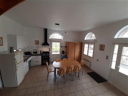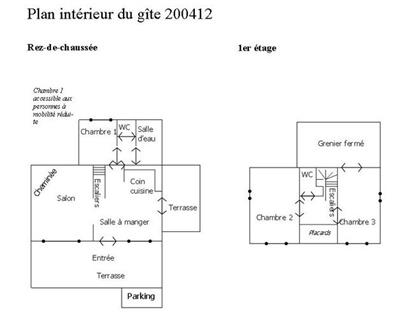 | Dans le village, à la ferme, gîte (115 m²) dans un ancien bâtiment agricole entièrement restauré. Au rez-de-chaussée : coin cuisine aménagé (réfrigérateur/congélateur, cafetière filtre et à dosettes Senséo) ouvert sur le séjour. 1 chambre (1 lit 140x190), salle d'eau. WC indépendant. A l'étage : 1 chambre (1 lit 160x190), 1 chambre (2 lits 90x190), WC avec lavabo. Possibilité lit bébé. Chauffage électrique inclus. Terrasses sur l'avant et sur l'arrière, terrain clos (100m²) indépendant. Autre gîte dans la même propriété. Cour commune. Animaux acceptés avec supplément de 4 € / jour/ animal (à régler sur place), forfait ménage obligatoire si présence d'un animal : 70€. Les options supplémentaires ( location draps...) sont à régler sur place. Grange fermée pour vélos ou motos. |