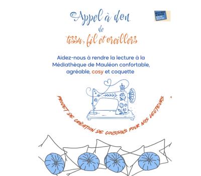 La médiathèque de Mauléon organise une collecte de tissus, de fils et d'oreillers.