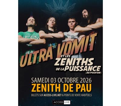 Le phénomène ULTRA VOMIT débarque enfin à Pau pour un concert aussi explosif qu’hilarant ! Maîtres incontestés du métal parodique à la française, les Nantais viendront retourner la scène avec leurs riffs acérés, leurs pastiches délirants et leur énergie scénique légendaire !