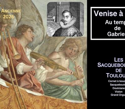 Canzoni instrumentales polyphoniques de la basilique St-Marc en simple et double chœur. Œuvres de Giovanni Gabrieli (1577-1612), Giovanni Picchi (1572-1625), Gioseffo Guami, (1542-1611), Giovanni-Baptista Bovicelli (1549-1614)… Les Sacqueboutiers de Toulouse : Daniel Lassalle : Sacqueboute Laurent Le Chenadec : Doulciane Helene Medous : Violon Nathan Degrange-Roncier : Cornet à bouquin Yasuko Bouvard : Grand orgue Tarifs : Plein tarif : 22,00 € Tarif réduit : 12,00 € (Famille nombreuse / Bénéficiaires minima / Étudiant Élèves du CRR < 22ans) Gratuit (Enfant moins de -16 ans)