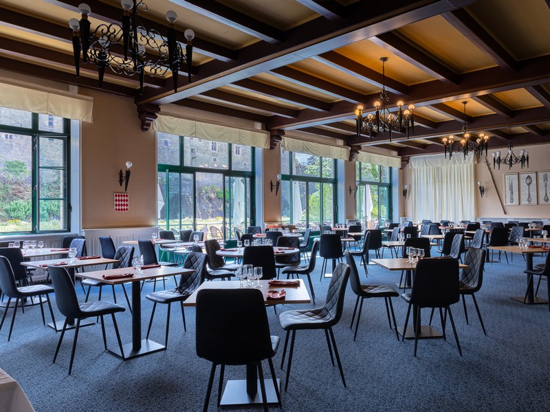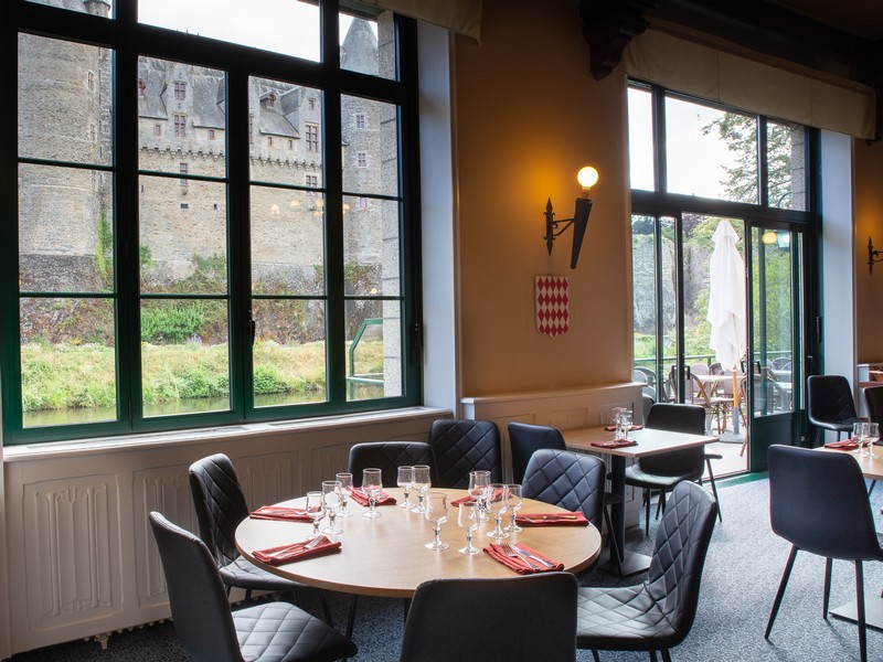 L'hôtel-restaurant du Château a une vue panoramique sur le château médiéval de Josselin. La cuisine qu'on propose ici porte le label restaurant du terroir qui valorise les produits régionaux et traditionnels. Elle se déguste en terrasse ou dans une salle au décor médiéval, devant un bon feu de cheminée. D'avril à septembre, le restaurant est ouvert tous les jours (midi et soir). D'octobre à mars, le restaurant est fermé le vendredi soir, le samedi toute la journée, le dimanche soir et le lundi midi.