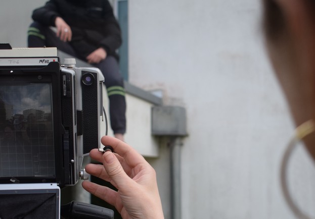 La photographe Marion Poussier a été accueillie au printemps 2025 pour une résidence de transmission au sein du CLPS (Centre de formation pour adultes) de Lannion. Elle a travaillé avec un groupe de onze adultes en recherche d’emploi inscrits dans la formation Prépa Avenir visant la réinsertion professionnelle des stagiaires. Au cours des séances d’atelier, les participant·e·s ont pu échanger autour du regard que l’on porte sur soi et sur les autres, réaliser des portraits à la chambre photographique, puis écrire des textes à partir de leurs images. Ces ateliers visaient à sensibiliser à la photographie à travers des temps de pratique et de discussion avec une artiste, à explorer la notion d’image de soi, ainsi qu’à relier la photographie à des récits intimes.