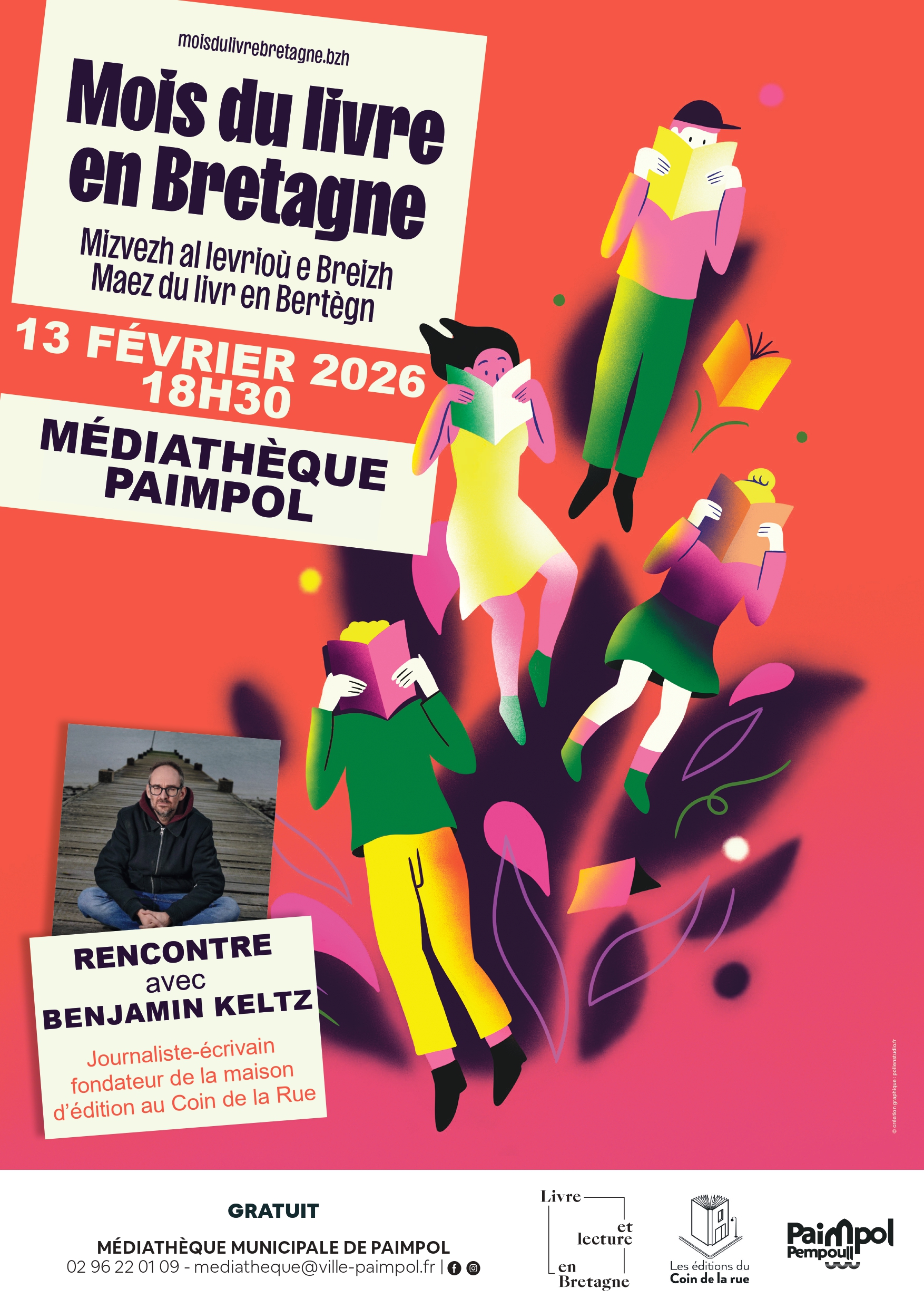 Le Mois du livre en Bretagne est un grand rendez-vous régional pour l’ensemble des métiers du livre et les publics, organisé par l’agence du livre en Bretagne : Livre et Lecture en Bretagne. La médiathèque de Paimpol propose une rencontre avec les éditions Au Coin de la Rue et son fondateur Benjamin Keltz, basés à Langrolay-sur-Rance (22).