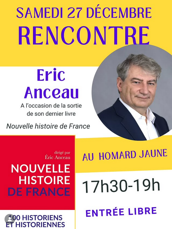 Samedi 27 décembre, entre 17h30 et 19h, venez rencontrer l’historien Éric Anceau au Homard Jaune !