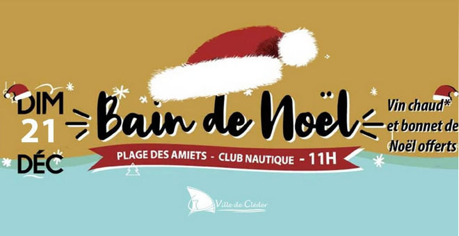 La commune de Cléder organise son sixième bain de Noël en présence des sauveteurs de la SNSM. RDV à 11h00 au niveau du club nautique. Un bonnet de père Noël et des boissons chaudes seront offerts à tous les baigneurs. Pour les spectateurs et les curieux, venez avec votre Pull Moche pour donner plus de convivialité à l’événement.