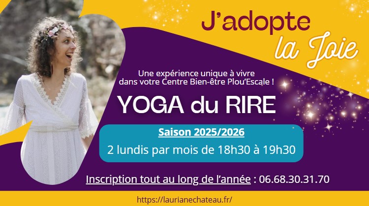 C'est la rentrée du Yoga du rire ! Au Centre Bien-être Plou'Escale, de septembre 2025 à juin 2026, retrouvons-nous deux lundis par mois, de 18h30 à 19h30, pour une parenthèse joyeuse, ressourçante et pleine d'énergie.
