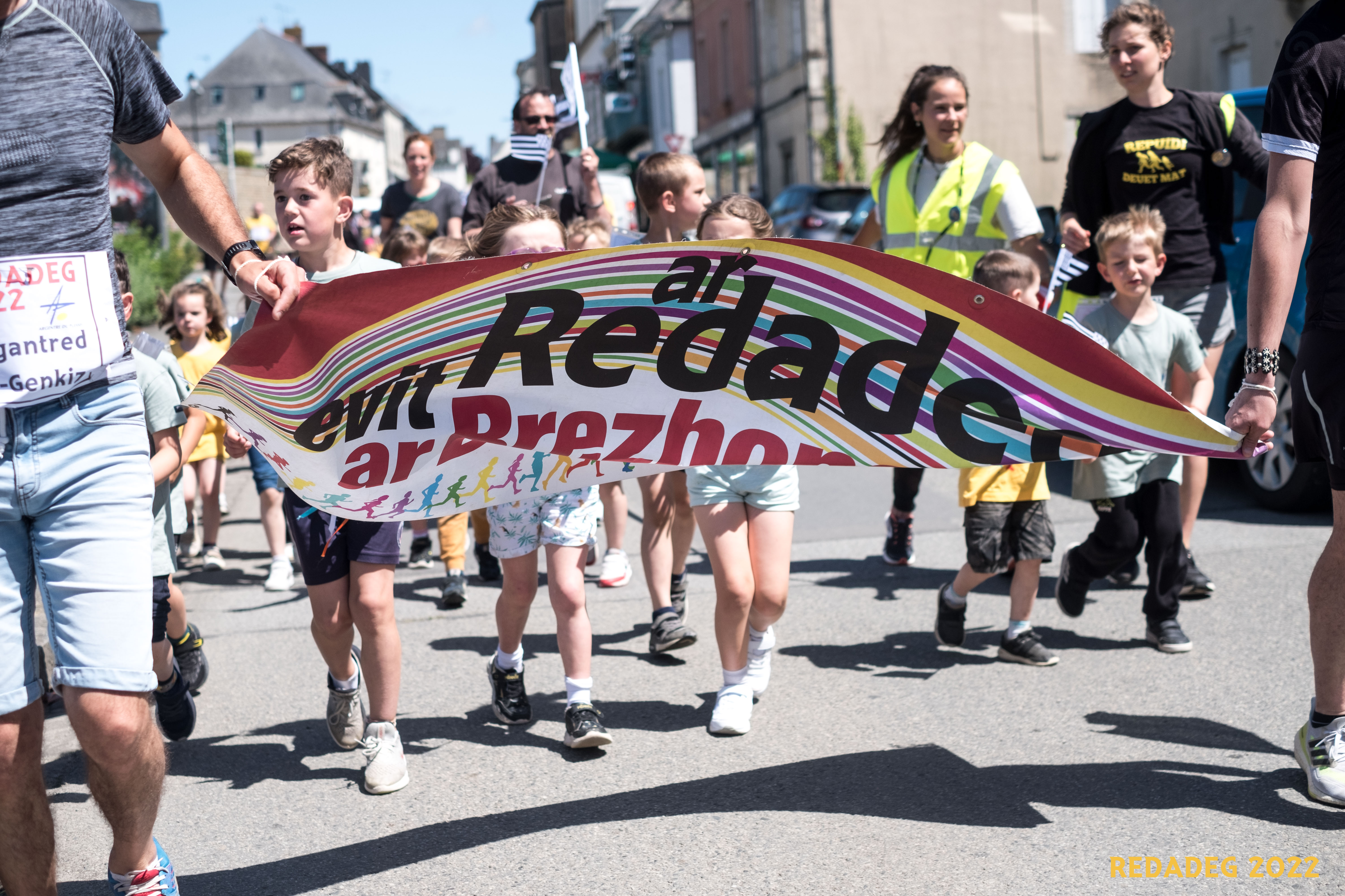 La Redadeg est une course de relais solidaire, festive et populaire, sans compétition, ouverte à tous. Les familles, jeunes et moins jeunes, enfants, parents et grands-parents courent ensemble. L’enjeu est de transporter un message en breton à travers la Bretagne, sans s’arrêter et le grand gagnant est la langue bretonne.