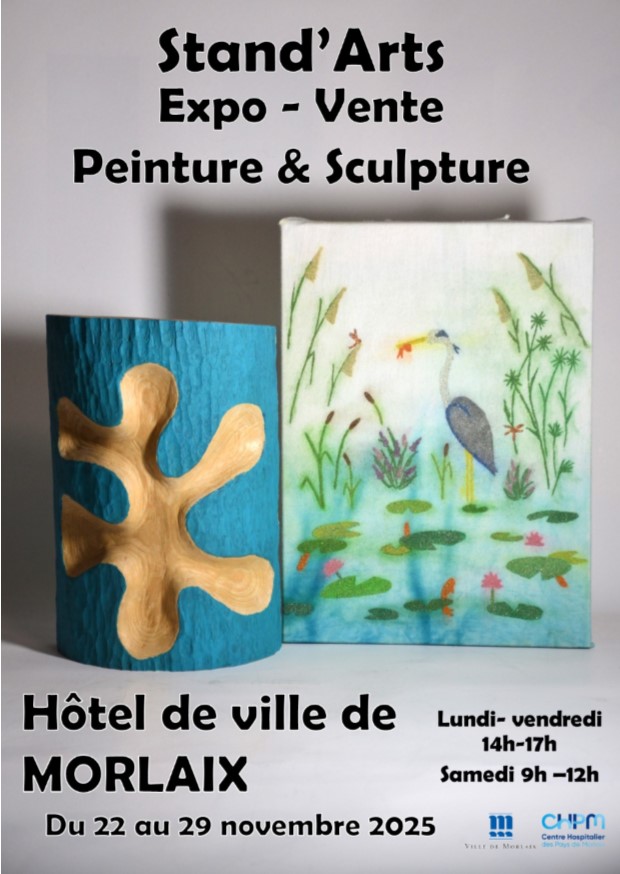L'hôpital de Morlaix et les ateliers thérapeutiques et artistiques de l'association Stand'Arts exposent leurs peintures et leurs sculptures à l'hôtel de ville de Morlaix.
