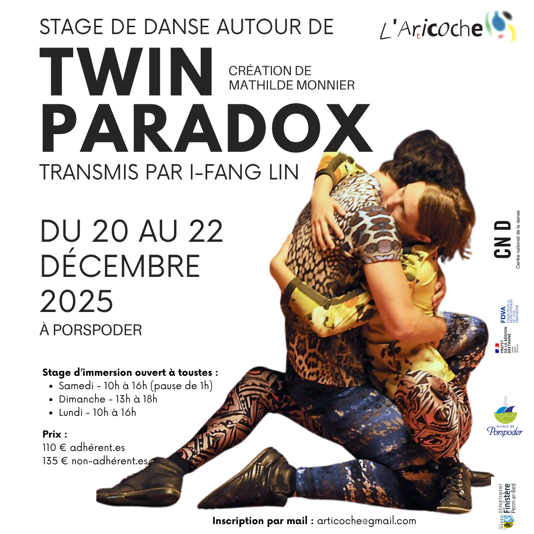 Entre décembre 2025 et juin 2026, le groupe amateur/ices de l'Articoche travaillera sur un extrait de la pièce emblématique Twin Paradox, œuvre de Mathilde Monnier, accompagné par la danseuse et chorégraphe I-Fang Lin.