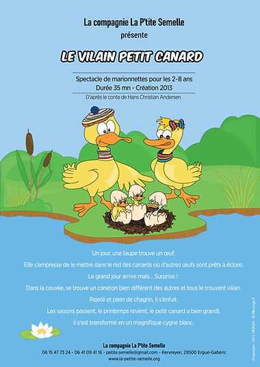 Le vilain petit canard Dans leur petite cabane, bien au chaud, la famille canard attend la venue de ses petits. Quoi ? Trois œufs ! Je croyais en avoir pondu deux ! Je l'ai peut être pondu cette nuit, en dormant... En plus il est énorme ! Mais voilà que des œufs éclosent... Quel est ce drôle de canard ? Il est étrange, il est trop grand, trop gros, trop gris ! Il faudrait le refaire! Ainsi commence la vie de ce vilain petit canard qui deviendra comme chacun le sait un merveilleux et magnifique cygne.
