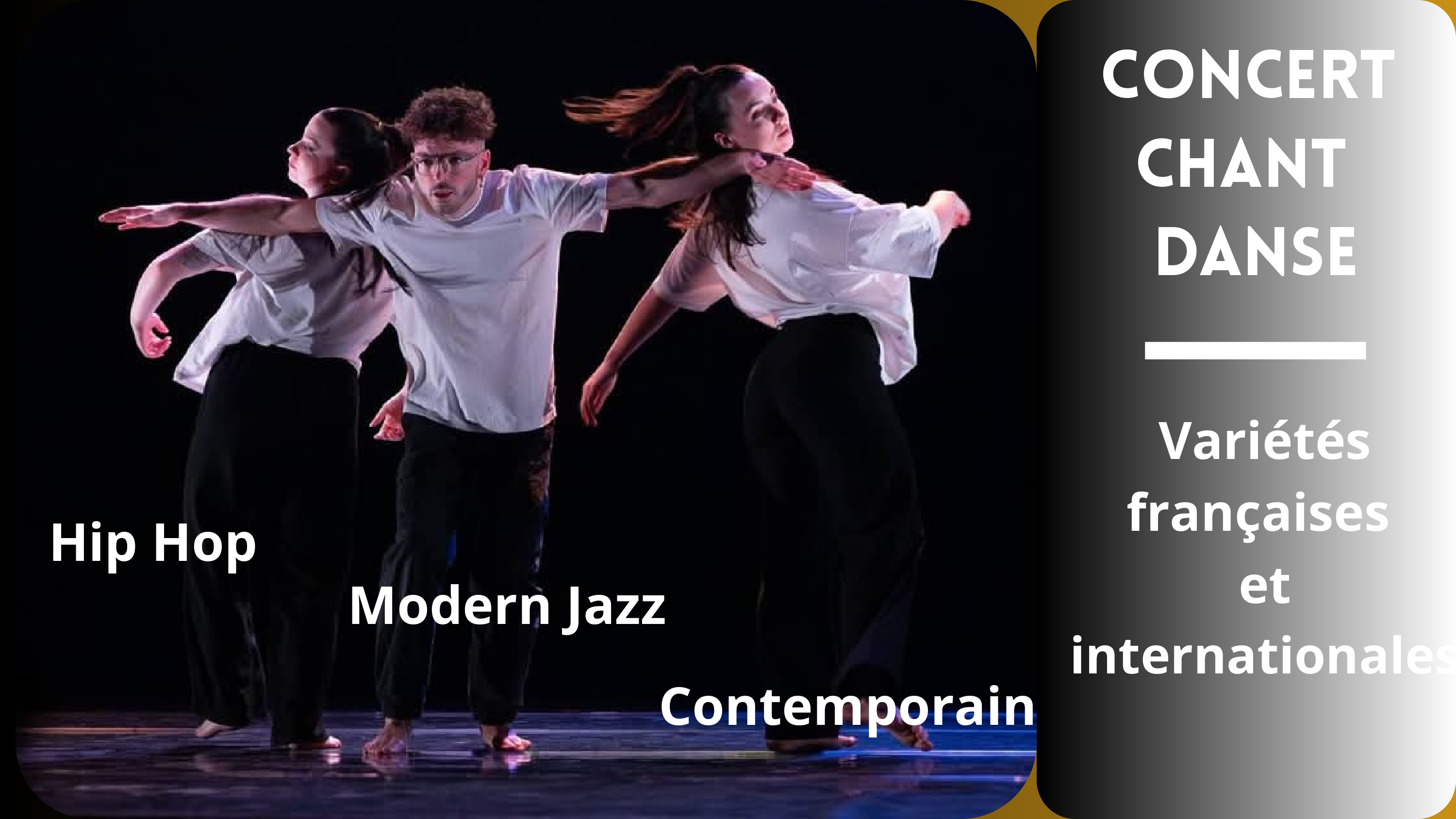 Le samedi 7 février à 20h, à la salle Le Confluent de Montfort-sur-Meu, plongez dans une soirée exceptionnelle où la musique rencontre la danse !! Sur scène, 10 danseurs et 4 chanteurs uniront leur énergie et leur talent pour vous offrir un spectacle vibrant, mêlant chorégraphies dynamiques et performances vocales. Au programme Des chants de toutes générations de variétés françaises et internationales Des chorégraphies originales et entrainantes mêlant le Hip Hop, le modern Jazz et le contemporain. Que vous soyez passionnés de musique, amateurs de danse ou simplement en quête d’une expérience artistique unique ou se mêlent à la fois 3 styles de danses et des chanteurs de toutes générations, ce concert chant-danse est fait pour vous. Restauration rapide sur place à partir de 19h. Sur réservation. Tarifs 12 ans et + : 11€ Tarifs de 3 à 11 ans : 5€