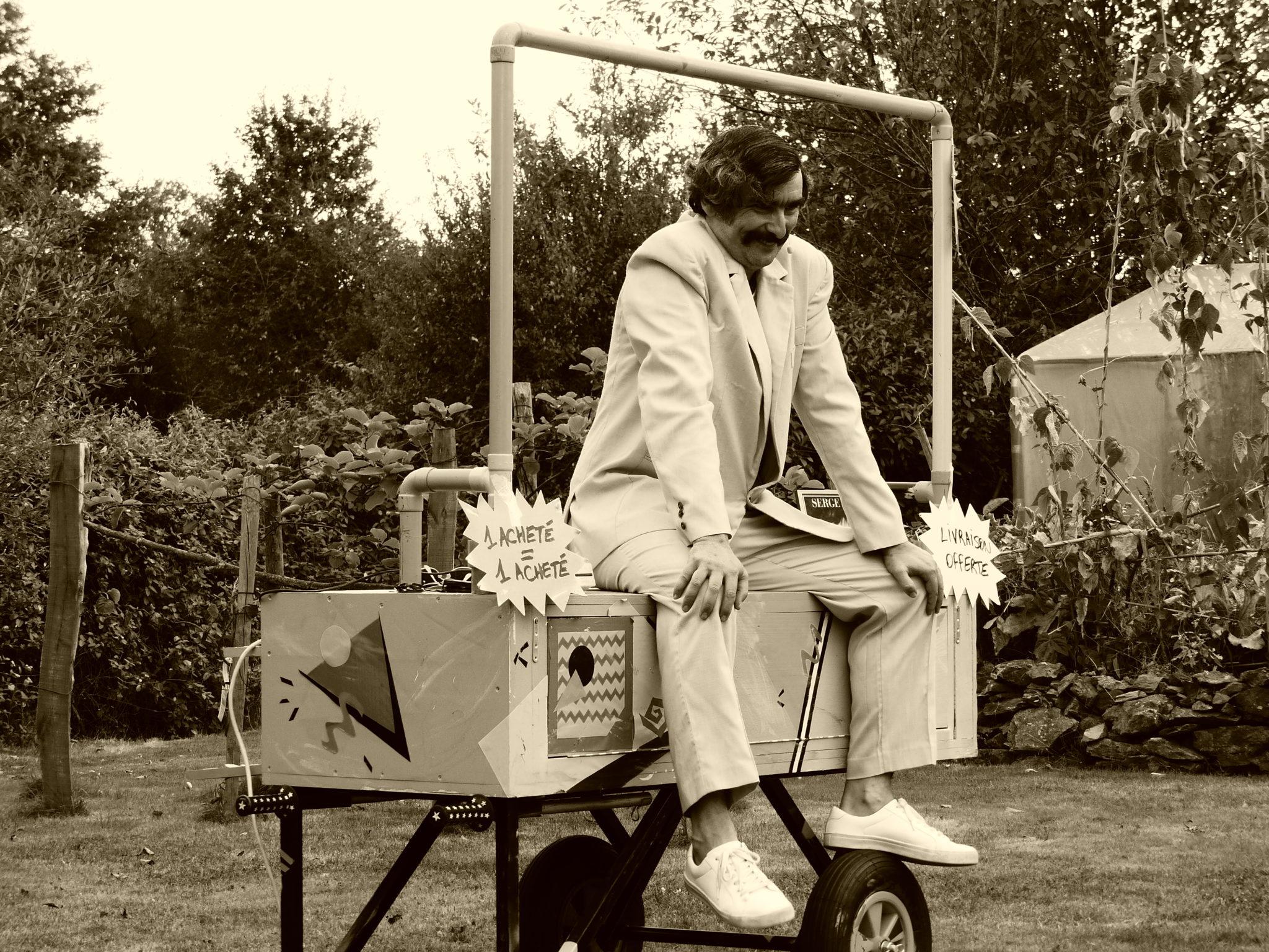 UN camelot, UN objet extraordinaire, pour la ménagère de moins et de plus de 50 ans, la dame au petit gilet en tergal de Mayenne, les sangliers de Vic-sur-Cère, Mimine… et Serge… Serge Lama bien sûr ! Hervé se raconte à travers la vente d’un objet extraordinaire, drôle de personnage ridicule, il va vous faire rire, vous surprendre, mais aussi vous toucher en plein cœur de sa fracture d’enfance et de vie ! Compagnie Clou.