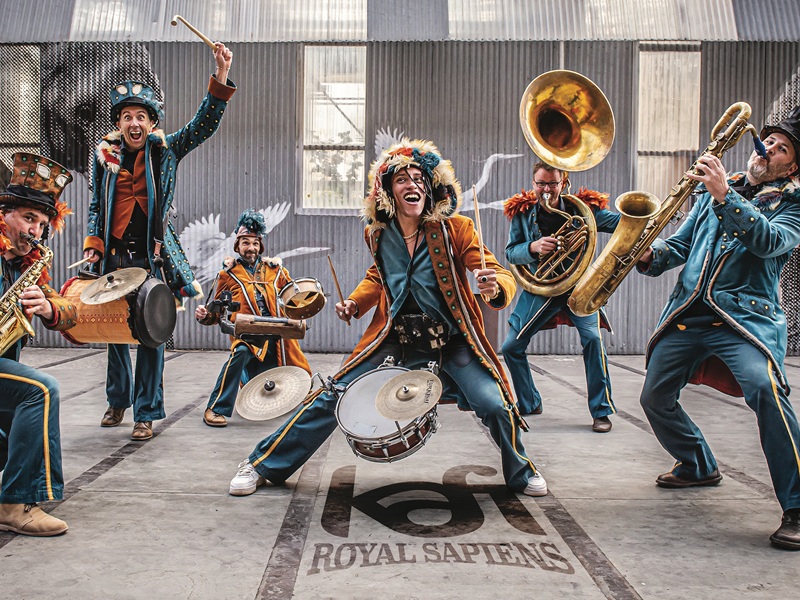 - Royal Sapiens (musique) par la Fanfare Kafi. Sapés comme des rois, hauts en couleurs, vêtus de lumière, de velours, de plumes et de fourrures, ces musiciens captivent autant vos yeux que vos oreilles. La fanfare KAFI revisite le concept des « sapeurs congolais », lui insuffle sa french touch et vous offre « Royal sapiens » : une musique épicée pour un show brillant et festif ! La musique insolite portée par la généreuse énergie de ses acteurs, vous sert un cocktail tonique d’où s’échappent des compositions originales et des reprises inédites.