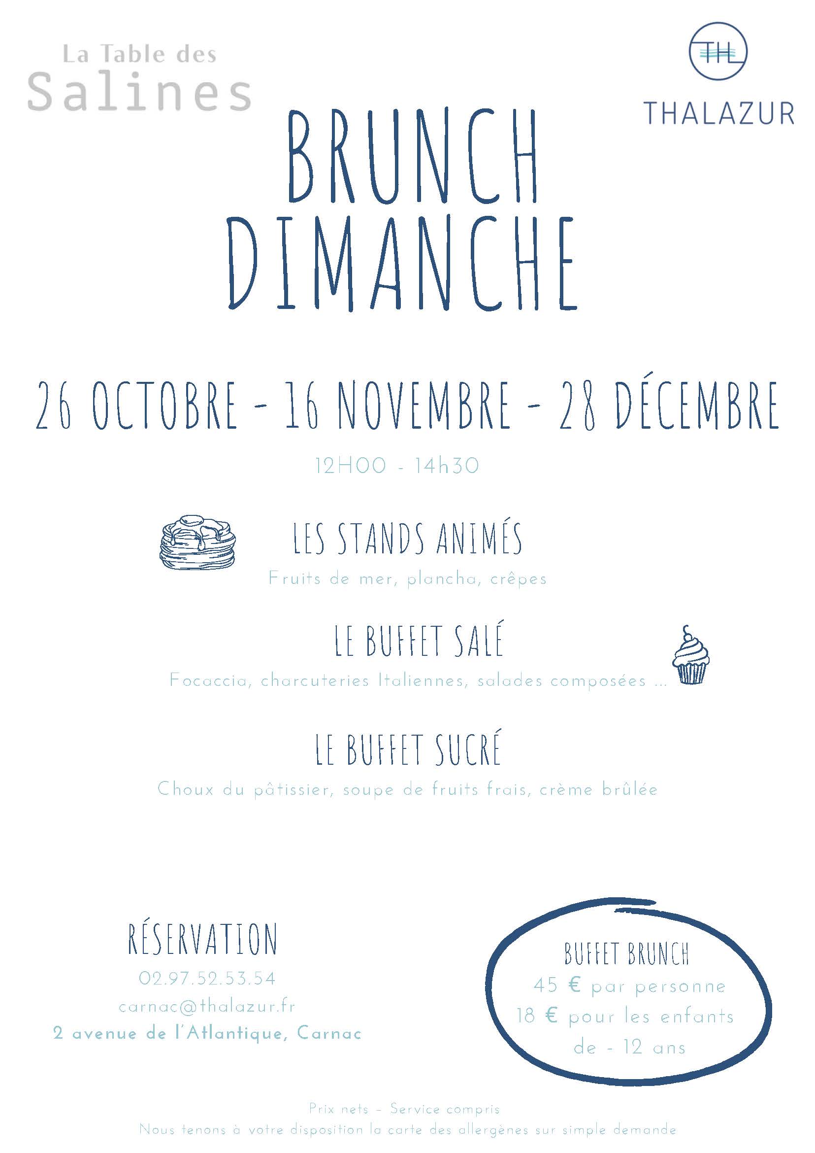 BUFFET BRUNCH : 45 € par personne - 18 € pour les enfants de - 12 ans