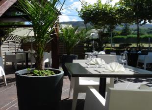 Pour apprécier tranquillement votre repas, vous aurez le choix entre la salle dans un décor sobre et raffiné ou la terrasse sous les platanes.