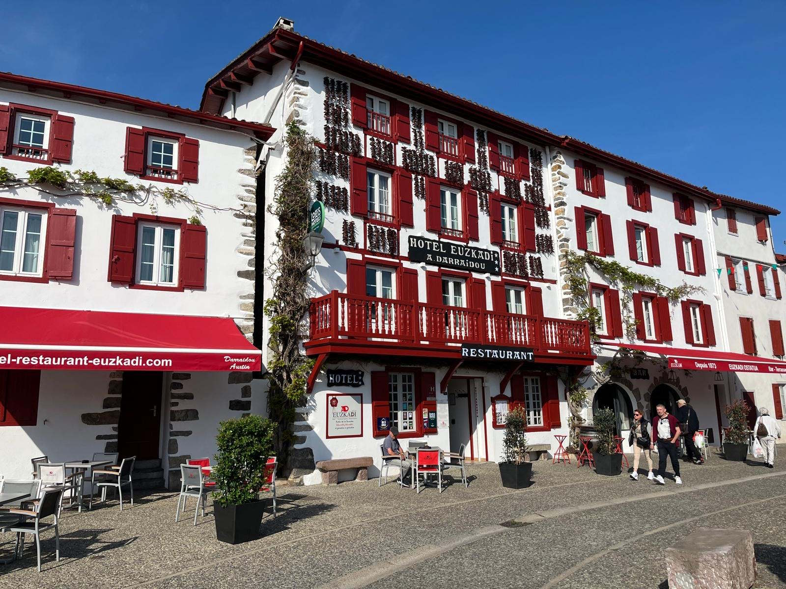 Depuis 1873, l'hôtel restaurant Euzkadi appartient à la même famille. D'une auberge réputée grâce aux grands marchés qui se tenaient tous les mercredis à Espelette, l'hôtel restaurant s'est transformé avec les différentes générations pour aujourd'hui compter 27 chambres, une grande salle de restaurant, un bar, une cave, un parking privé.
