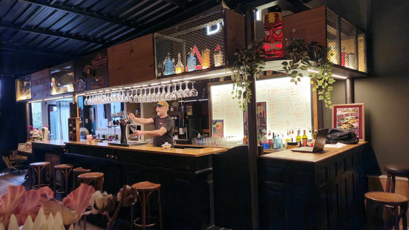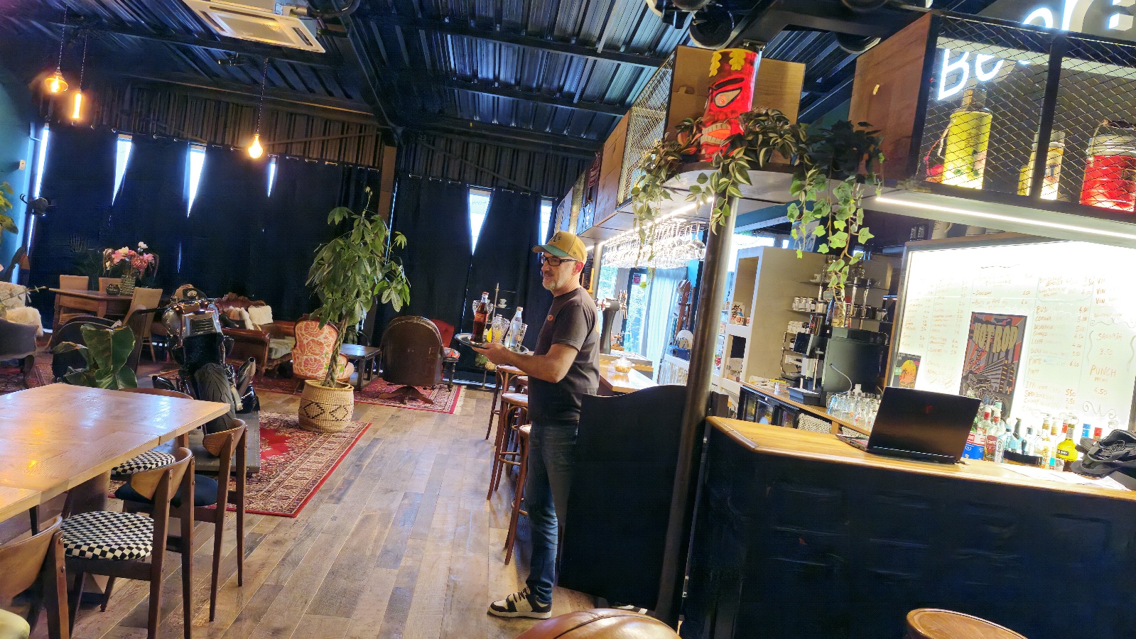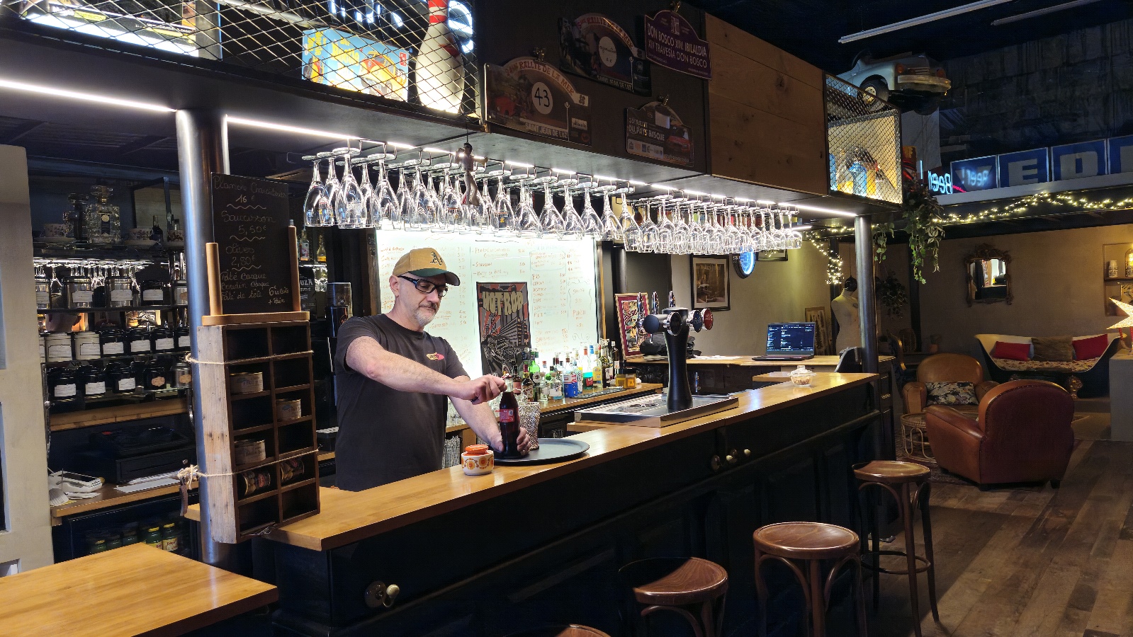 Tapas À seulement 2 km du centre d’Urrugne et au pied du col d’Ibardin, El Ritchie Cars & Coffee vous accueille dans un cadre atypique entre océan et montagne. Facilement accessible, ce lieu singulier est idéal pour une pause conviviale lors d’une balade ou sur la route des ventas. Plus qu’un simple bar, El Ritchie Cars & Coffee est un véritable lieu de vie où se mêlent esprit vintage et convivialité. On y savoure des viennoiseries autour d’un thé l’après-midi, ou des planches de charcuterie à l’heure de l’apéritif. Sa décoration chaleureuse mêle pièces de voitures de collection, objets de déco US, meubles et vaisselle chinés, créant une ambiance cosy et unique. Le lieu accueille aussi des expositions de voitures et de motos anciennes et de collection, ainsi que des soirées à thème autour de la culture US, du rock et bien plus encore. Grand parking à disposition. Tarifs :