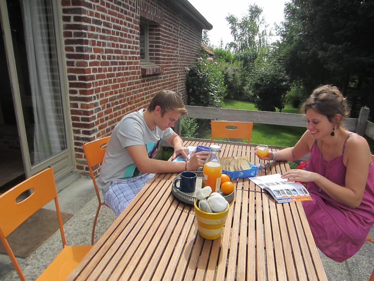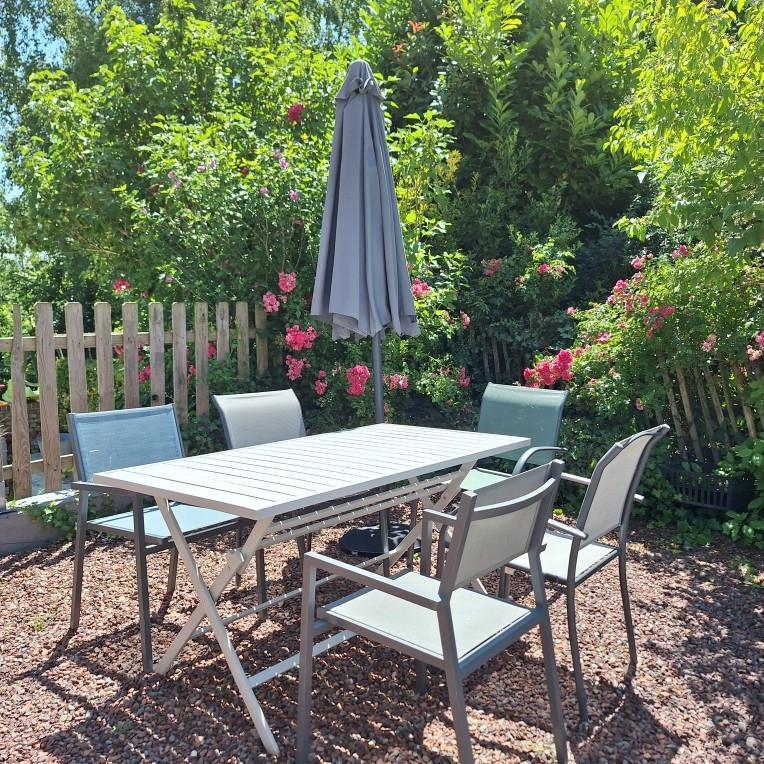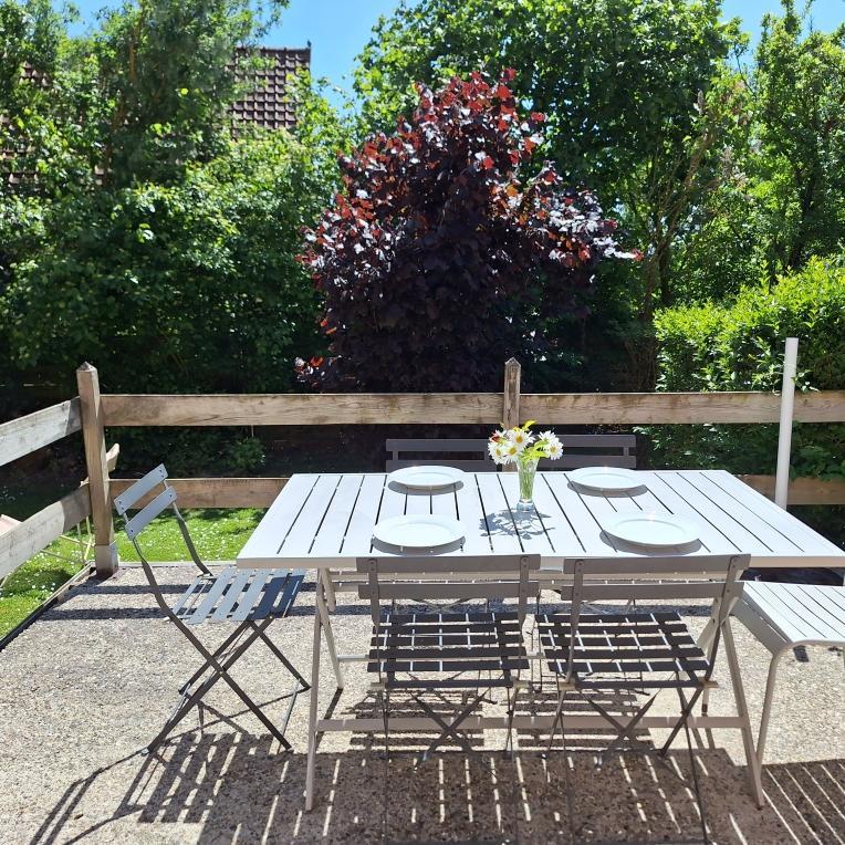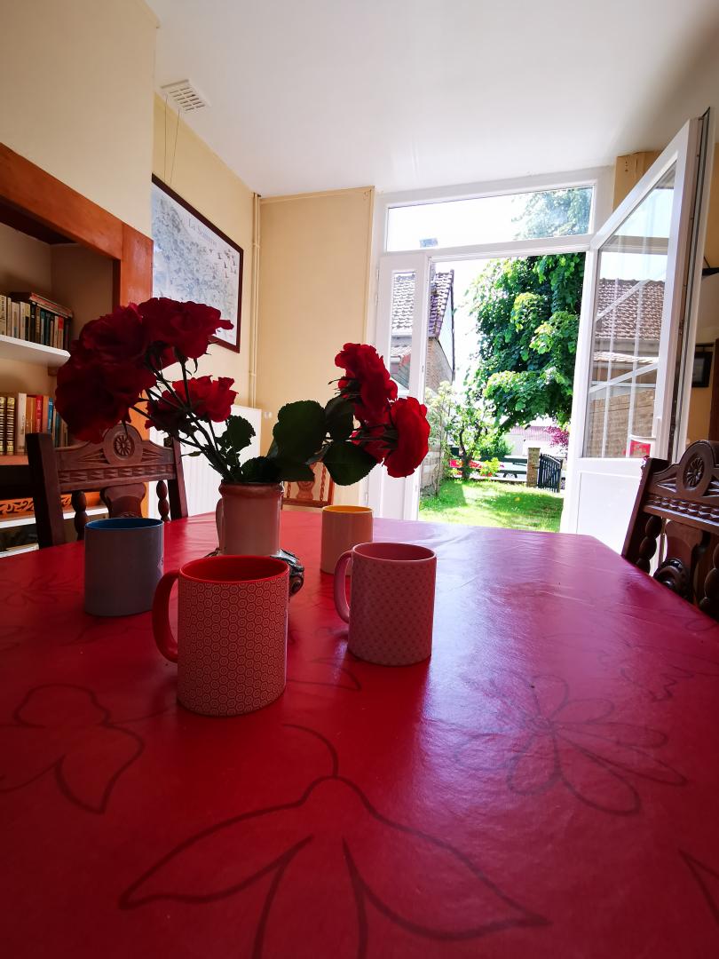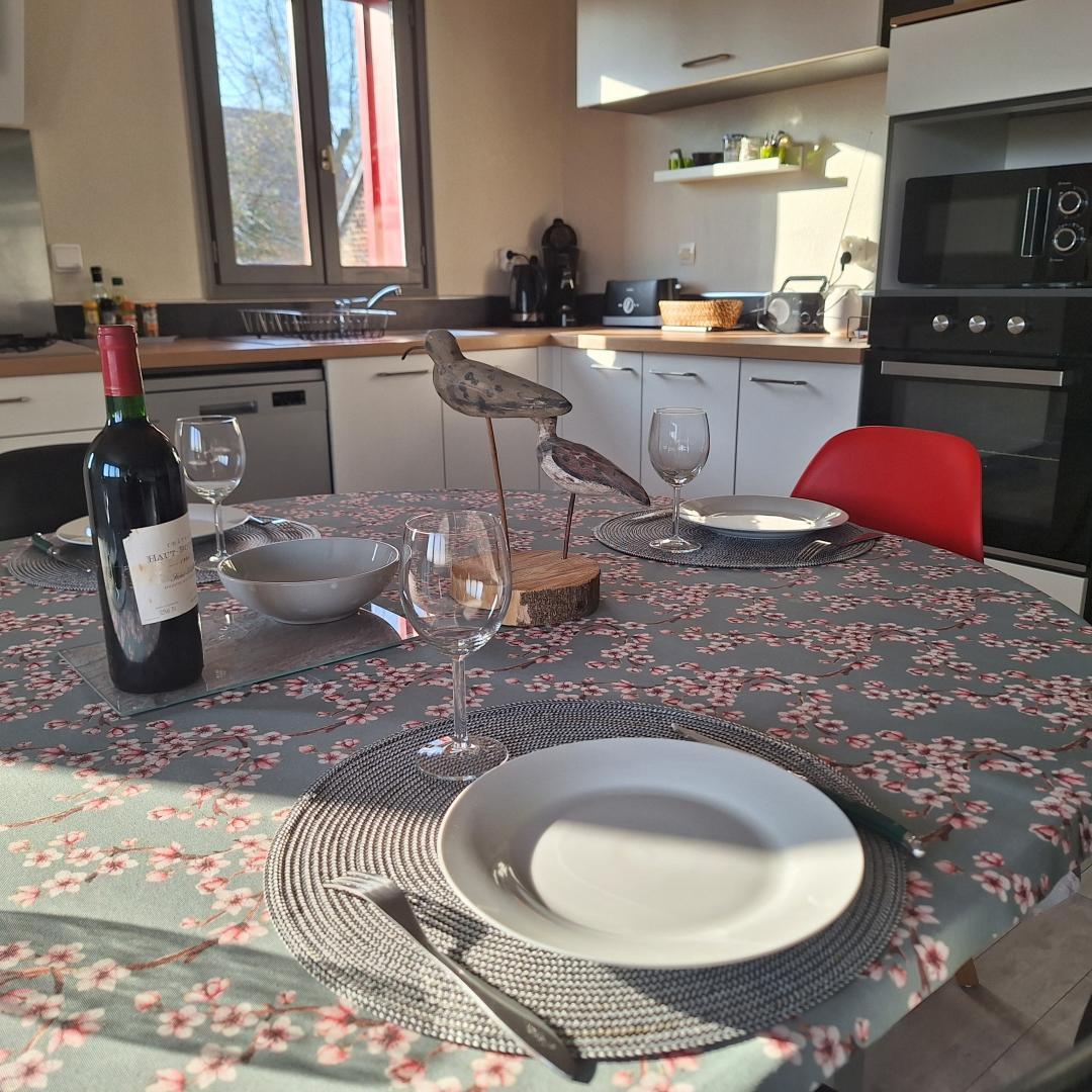 | Au cœur d'un petit village de baie de Somme à Grand-Laviers ( 5 km d'Abbeville et 12 km de Saint Valéry), le gîte dispose au rez-de-chaussée d'une salle à manger et d'un salon ouvert sur la cuisine aménagée (réfrigérateur/congélateur, cafetière filtre et à dosettes Senséo). Au 1er étage, une chambre (1 lit 160x200) et une chambre (2 lits 90x190). 2 salles d'eau et 2 WC. Nous vous accueillons dans un bel espace de nature ( 7000 m2 de jardin fleuri, et pré) entre mer, forêt et campagne. espace, confort et calme, jeux et convivialité vous y attendent. commerce et restaurant dans le village, réserve ornithologique, piste cyclable et circuits de randonnées, de nombreux atouts sur place pour un séjour de détente réussi. 2 gîtes dans la même propriété. 2 Vélos adultes à disposition. Abri sécurisé pour vélos. Borne de recharge pour véhicule électrique à 5 km, à Abbeville. Les options sont à régler sur place. | ||||
