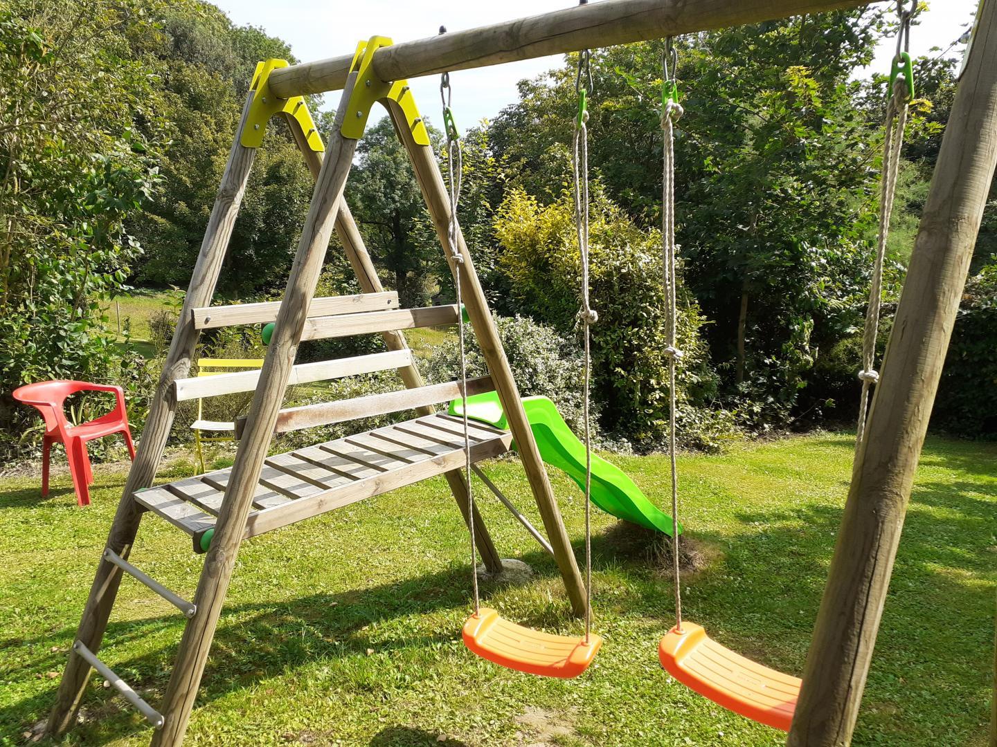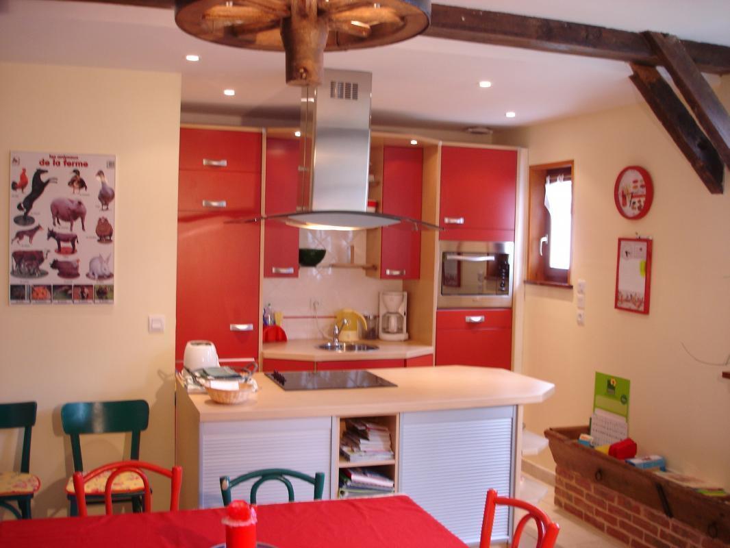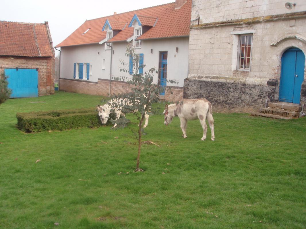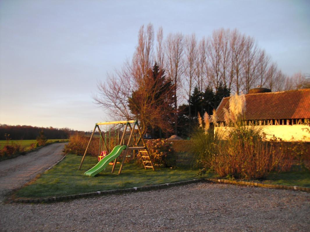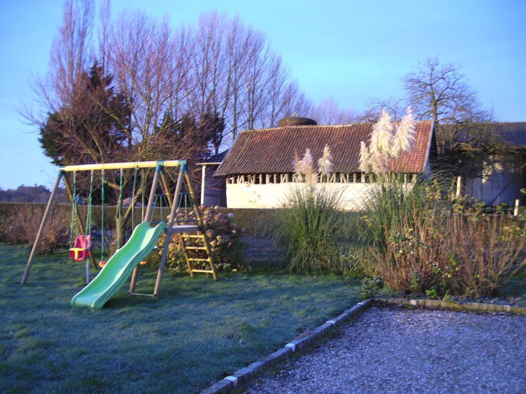 | Gîte (83 m²) mitoyen au gîte 200425, en pleine nature, loin de la route mais à 5 mn d'Abbeville. Gîte aménagé dans les anciennes écuries de l'exploitation agricole. Au rez-de-chaussée : coin cuisine aménagé (réfrigérateur/ congélateur, cafetière électrique et à dosettes Senséo) ouvert sur séjour, salle d'eau (grande douche au sol), WC indépendant A l'étage : 1 ch mansardée (1 lit 140x190), 2 ch (chacune avec 2 lits 90x190). Salle de bains avec WC. Chauffage central au fioul inclus, Lave-linge, antenne satellite. Terrasse, salon de jardin. Toboggan, trampoline. Barbecue. Lits faits à l'arrivée, linge de toilette et torchons fournis. Ménage inclus. WIFI. Animaux de la ferme sur place. Animaux non admis. Abri couvert pour vélos. | ||||